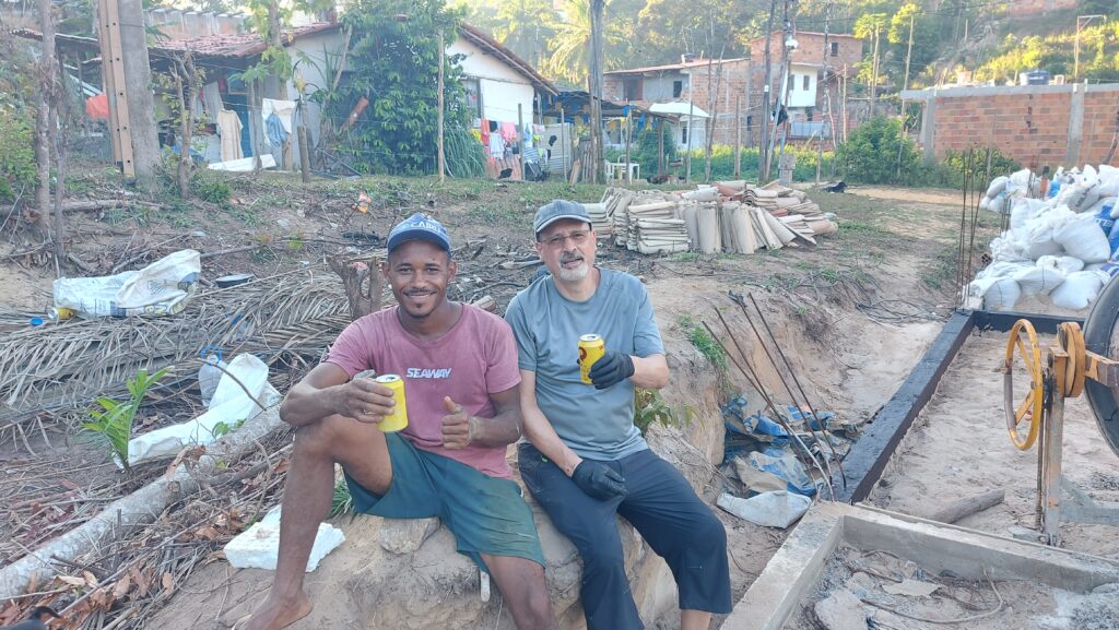 - The builders had finished digging a series of 9 holes (around 2m deep) and preparing the iron reinforcements for the foundation for the community hall at the front